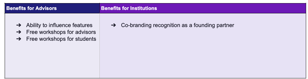 Founding Advisors gain early access, real influence over features, and meaningful benefits for both themselves and their institutions — in exchange for feedback, engagement, and a commitment to piloting IVY with their student population.